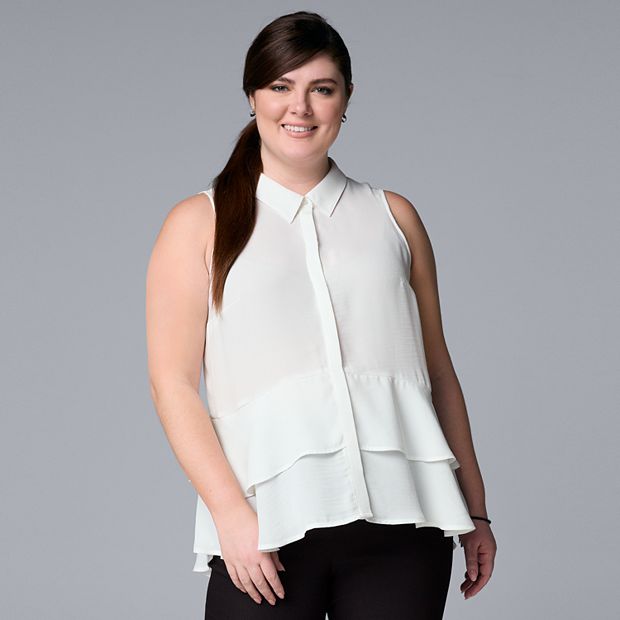 Plus Size Simply Vera Vera Wang Sleeveless Flounce Shirt