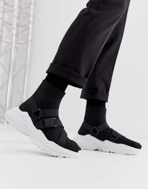 ASOS DESIGN sock sneakers in black with chunky sole and straps ASOS