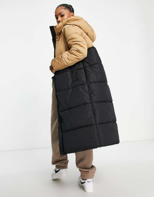 Stradivarius padded coat new arrivals, Stradivarius colour block longline padded puffer coat in beige new arrivals