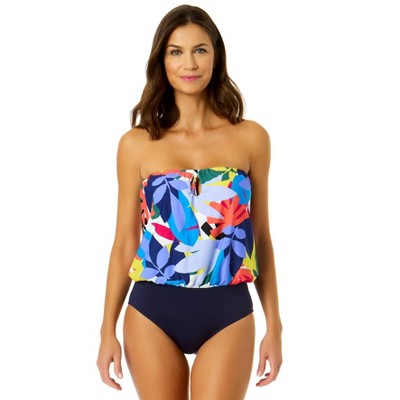 Anne Cole Women s Tropic Stamp Strapless Blouson Keyhole One Piece