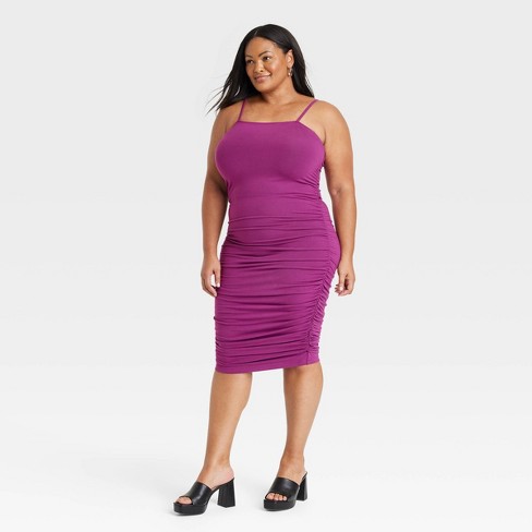 Women s Ruched Midi Bodycon Dress Ava Viv Magenta Xxl Target