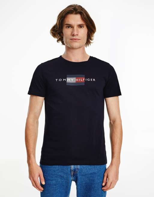 Tommy Hilfiger T shirt avec logo drapeau embl matique et lignes Bleu marine