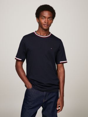 T shirt embl matique col ras du cou liser Bleu Tommy Hilfiger