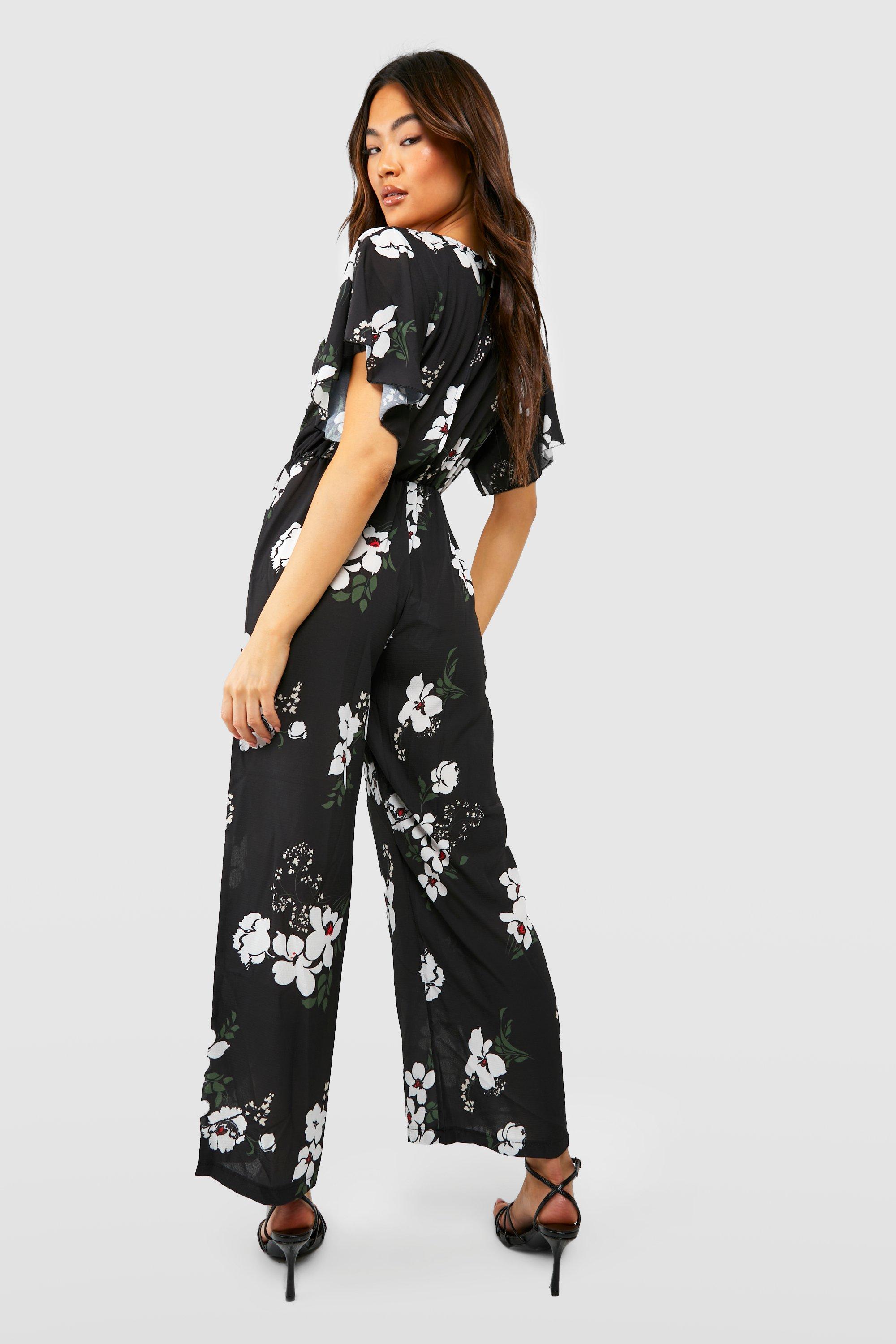 Yumi Navy Floral Angel Sleeve Jumpsuit