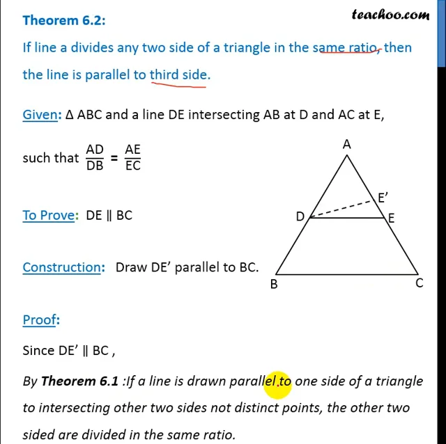 Class 10 maths Theorem 6.2 proof converse of Thales theorem Bpt theorem