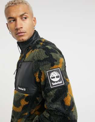 Timberland camo print sherpa fleece jacket in green multi