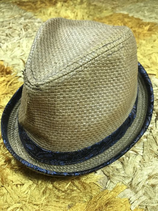 Topman Topman Straw Hat Panama Trilby Fedora With Paisley Print