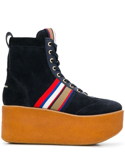 Tory Burch Striped High top Platform Sneakers Boots In Tory Navy