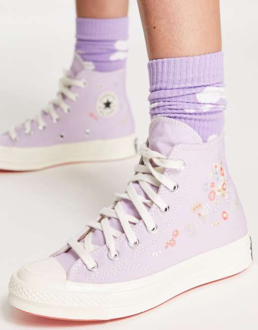 Converse Chuck 70 Hi Things to Grow Sneakers lilla con ricamo