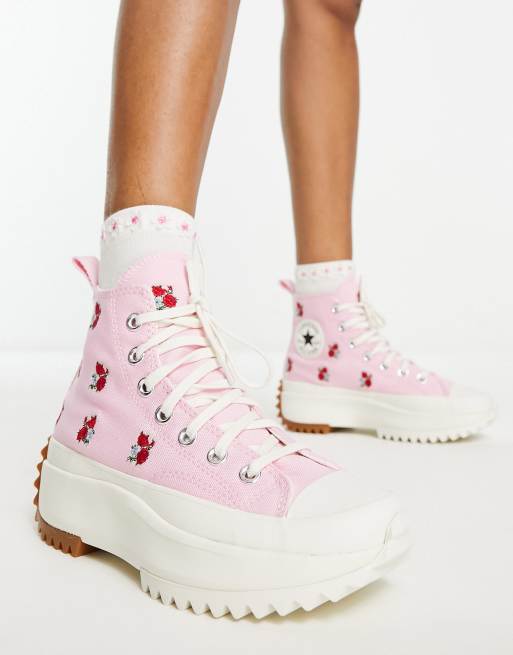 Converse Run Star Hike Sneakers alte rosa con fiori ricamati