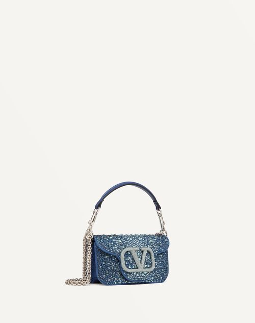 Small Loc Denim Shoulder Bag With Rhinestones for Woman in Blue