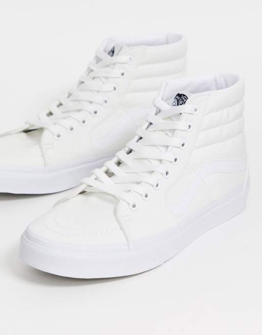 Vans alte bianche di pelle new arrivals, Vans SK8 Hi Sneakers alte bianche con stampa di fiamme ASOS new arrivals