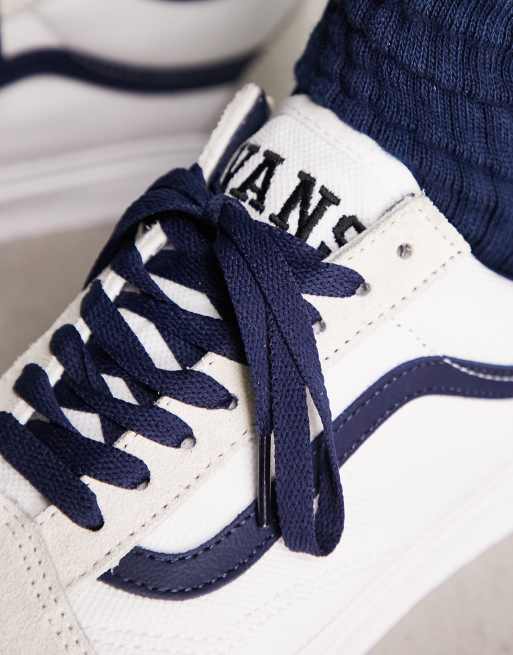 Vans Old Skool Baskets avec bande sur le c t Blanc bleu