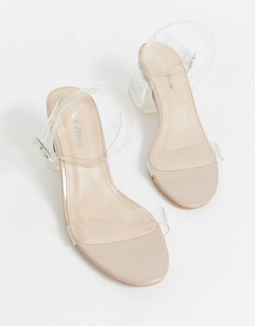 Public Desire Wide Fit Afternoon clear block heeled sandal in beige patent
