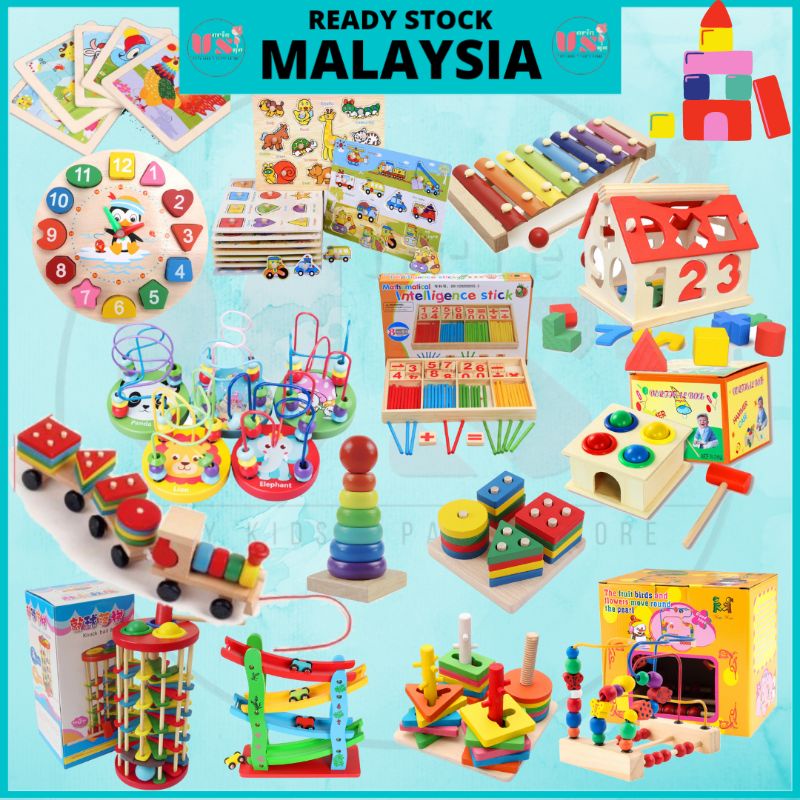 READY STOK Wooden Educational Toys Kids Montessori Building