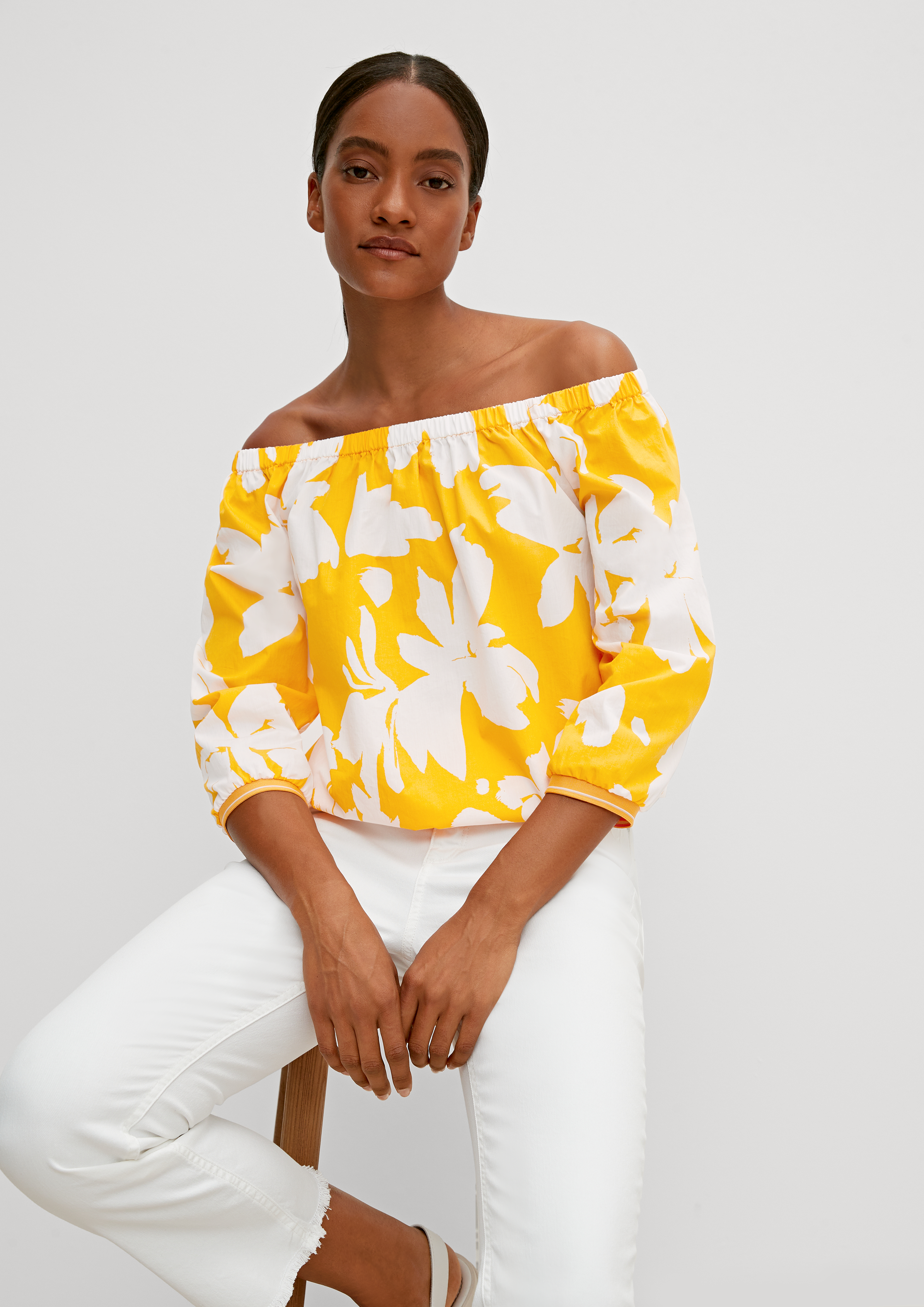 Smocked off the shoulder top Light yellow Floral Ladies H M