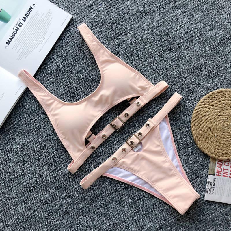 Sexy Thong Bikini 2020 Summer Belt Monokini Silver Hollow Out Swimsuit One Piece Bodysuits High Cut Bandage Swimwear Women New