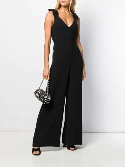 Bow embellished Crepe Wide leg Jumpsuit In Black