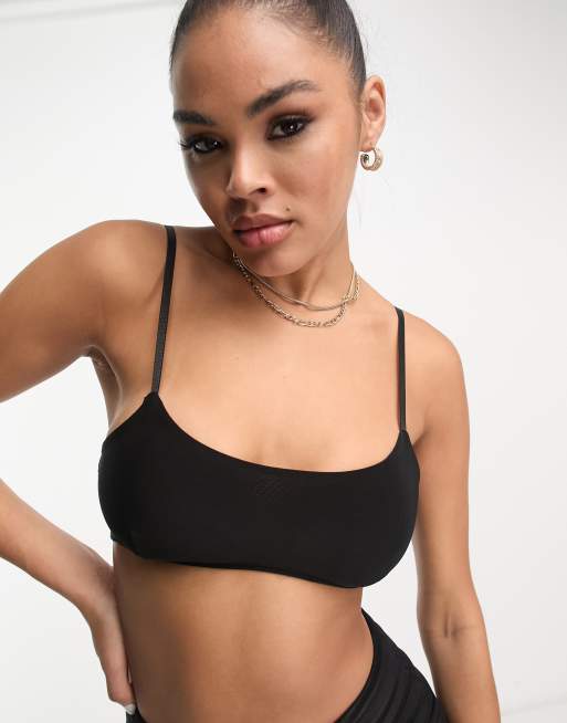 Asos black bralette new arrivals, ASOS DESIGN stretch faux leather bralet with mesh detail in black new arrivals