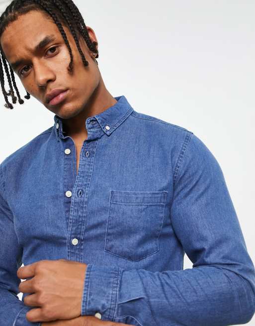 ASOS DESIGN slim denim shirt in mid wash