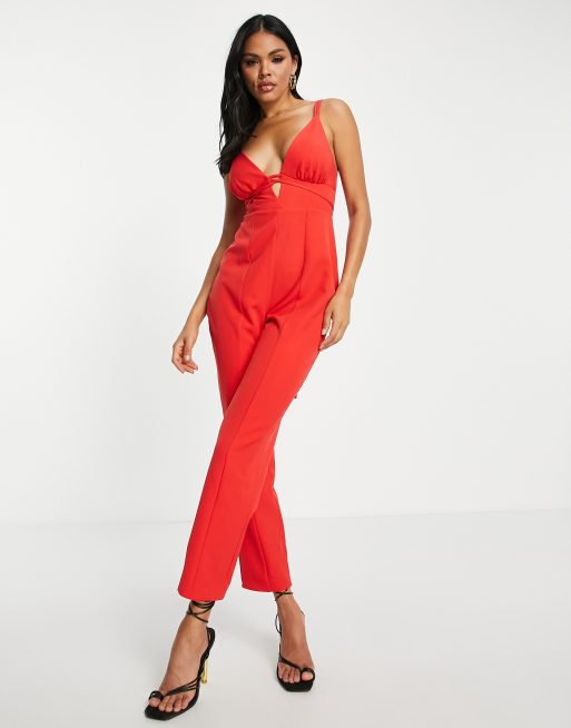 ASOS DESIGN strappy plunge peg leg jumpsuit in red ASOS