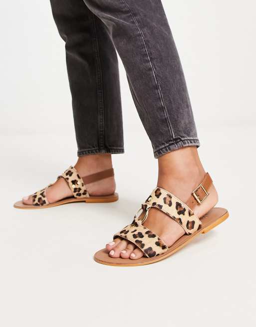 ASOS DESIGN Flisse leather flat sandals in leopard