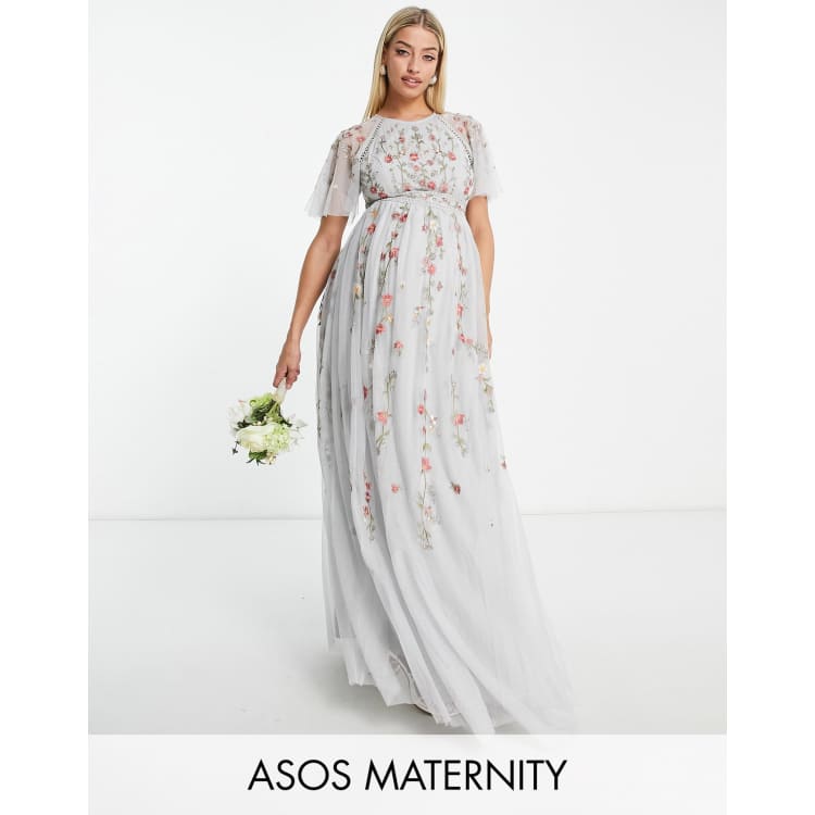 ASOS DESIGN Maternity Bridesmaid floral embroidered maxi dress with embellishment in soft blue