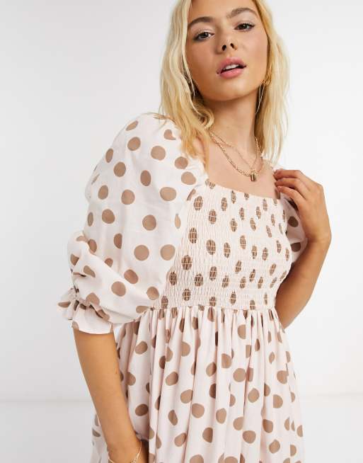 ASOS DESIGN shirred cotton maxi dress in polka dot ASOS