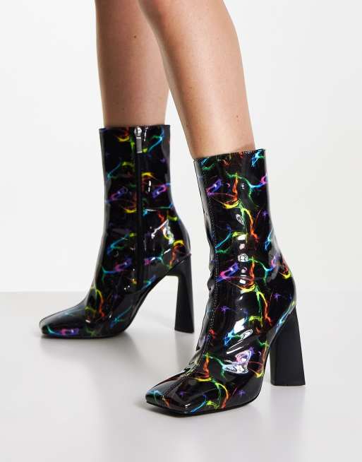 ASOS DESIGN Eddie high heeled square toe boots in multi