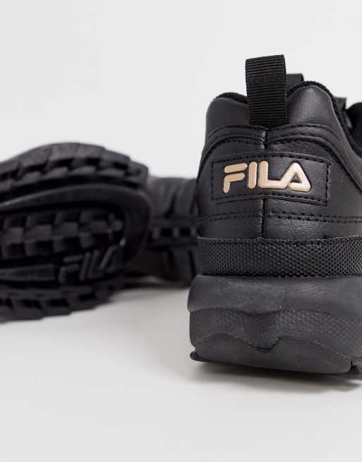 Zapatillas de deporte negras con detalles en dorado rosa Disruptor II de Fila