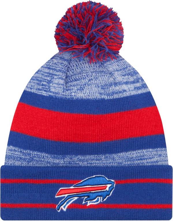 New Era Buffalo Bills Blue and White Sideline Pom Pom Beanie