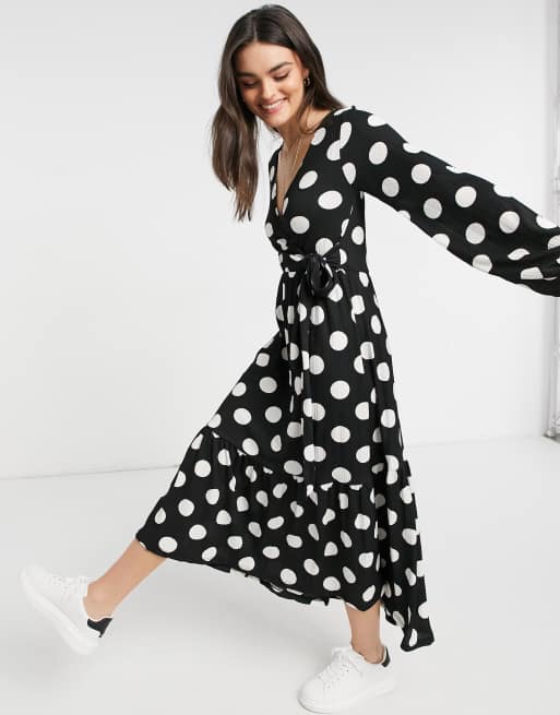- black and white spot wrap dress